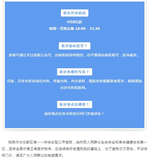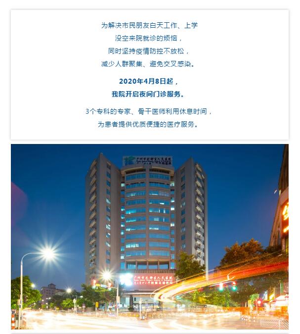 看病方便啦!4月8日起,我院开启夜间门诊服务!