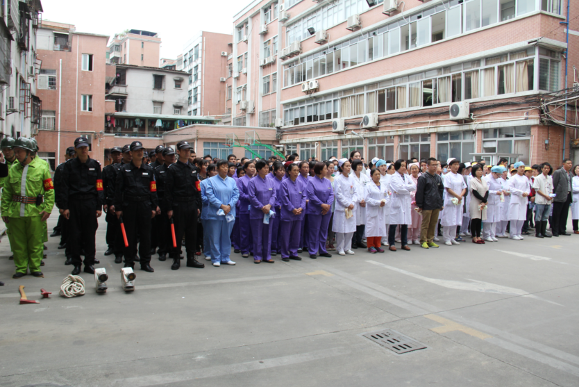 此次演习分为火灾模拟场景演练和灭火器操作练习两个部分。下午3点,全体人员在7号楼后院停车场集合,首先,主管医院消防工作的孙副院长亲自主持了本次消防演练,强调了消防安全的重要性,保卫科叶科长对演练流程进行讲解说明,随后宣布演习开始。
