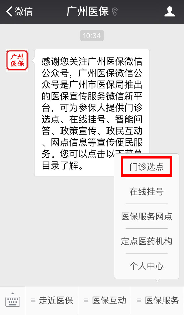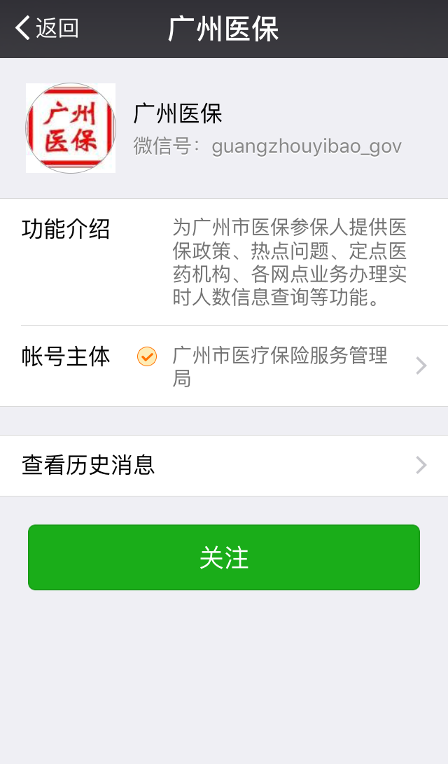 1、关注“广州医保”微信公众号。