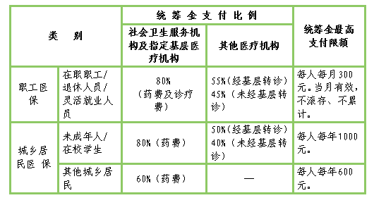 注:1.参保人在选定的定点医疗机构进行门诊就诊,才能享受以上门诊待遇。
