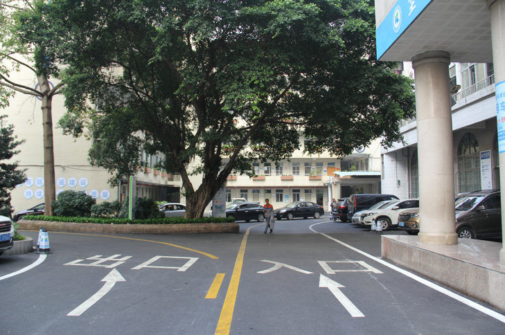 ② 院内路面重新铺设沥青,明确划分功能区域。沥青路面已画好新的道路指引线、停车线,并有专人引导车辆分流、停放,防止绕行错行的情况发生。同时,为送货车设置专门的卸货区,进院卸货前需向院方报备,确保院内车辆有序、通畅。
