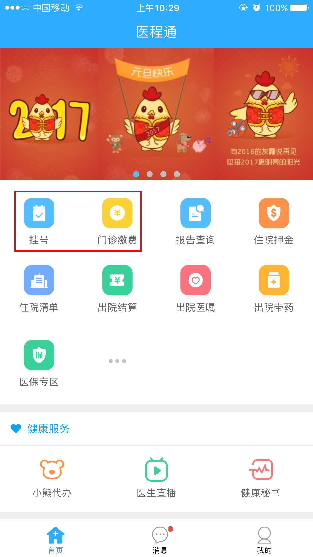 医院微信公众号、医程通和支付宝都可以在线挂号、缴费,患者就诊更方便