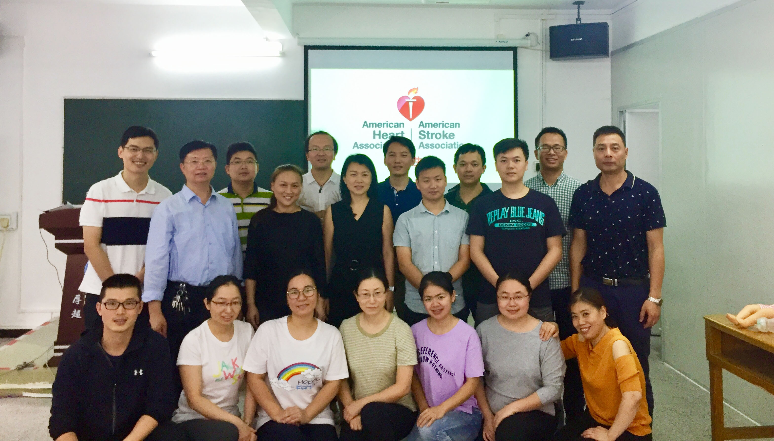 今年10月,我院成为美国心脏协会(AHA)基础生命支持课程(BLS)授权培训点,并率先在区内进行AHA-BLS课程培训。
