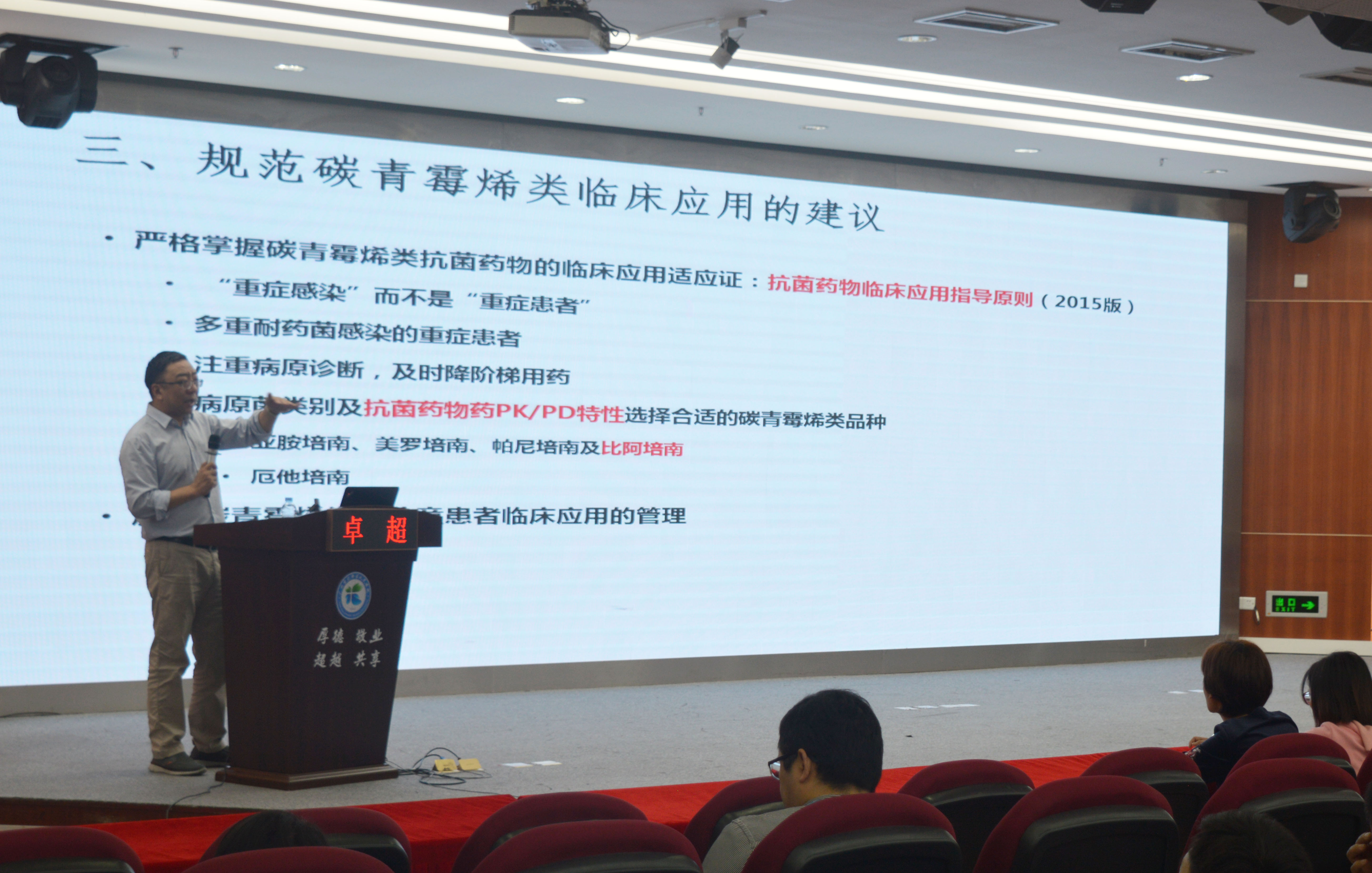 本次培训由广东药科大学附属第一医院药学部陈吉生主任、广州医科大学附属第一医院检验科卓超主任、广州市第一人民医院呼吸内科曾军主任、浙江省人民医院医务部徐海铭主任、南方医科大学附属南方医院感染管理科孙树梅主任主讲,分别以《从追踪案例看抗菌药物管理》、《细菌耐药状况与耐药菌治疗策略》、《抗菌药物AMS管理策略及方法》、《碳青霉烯类药物的合理应用与管理》、《围手术期预防使用抗菌药物管理》为主题,从临床、药学、院感、微生物及行政管理等方面对抗菌药物的临床合理应用及管理进行全面系统的讲解。