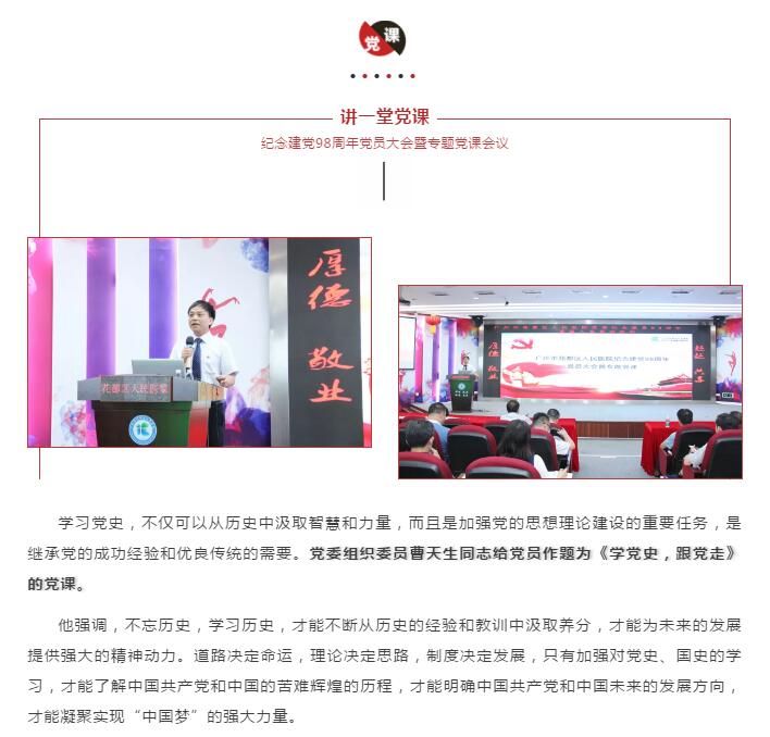 学党史,跟党走——区人民医院召开纪念建党98周年党员大会暨专题党课