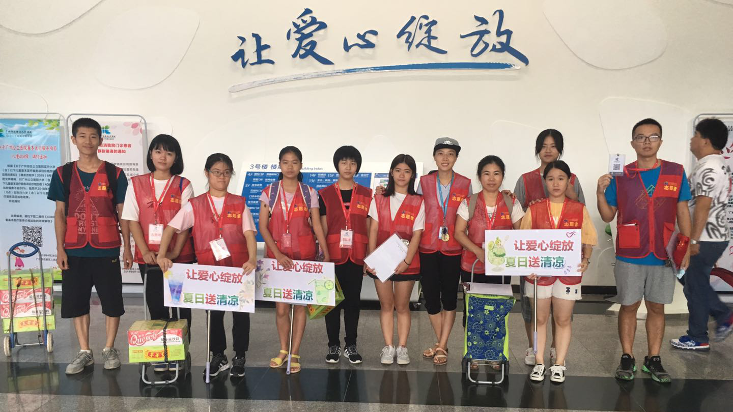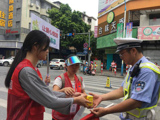 8月17日,花人医志愿者走到三个院区,给那些不畏高温酷暑、仍然坚守在生产、基建一线辛勤工作的本院户外工作者送去夏日清凉、送去人文关怀。关爱范围扩大到院外环卫工人、交警同志、城管同志、外卖快递小哥等,在三个院区沿着指定路线为高温下仍奋斗在一线的户外工作者们免费提供清凉饮料,希望能给他们送去一丝清凉。