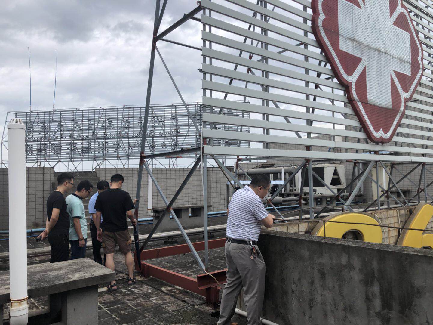 随后,院领导继续带领各相关职能部门负责人,分别检查了住院病区、各楼楼顶以及宝华和田美院区,特别强调要做好户外广告牌的安全排查。同时,对应急物资储备情况进行了检查,值班人员对办公场所电源,门窗情况再次进行核查,值班应急人员保持待命状态。