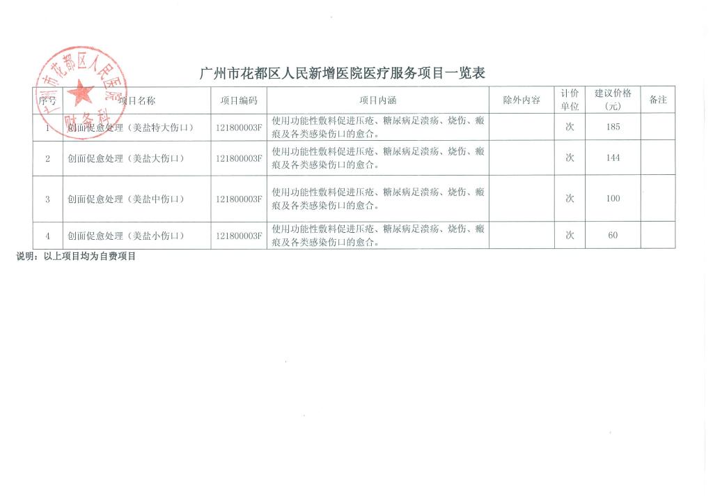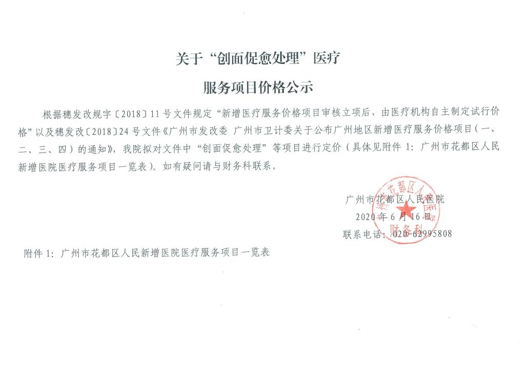 广州市花都区人民医院关于“创面促愈处理”医疗服务项目价格公示