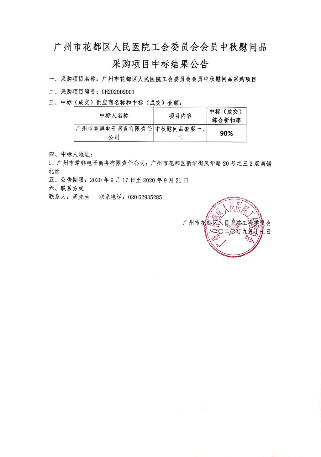 广州市花都区人民医院工会委员会会员中秋慰问品采购项目中标结果公告
