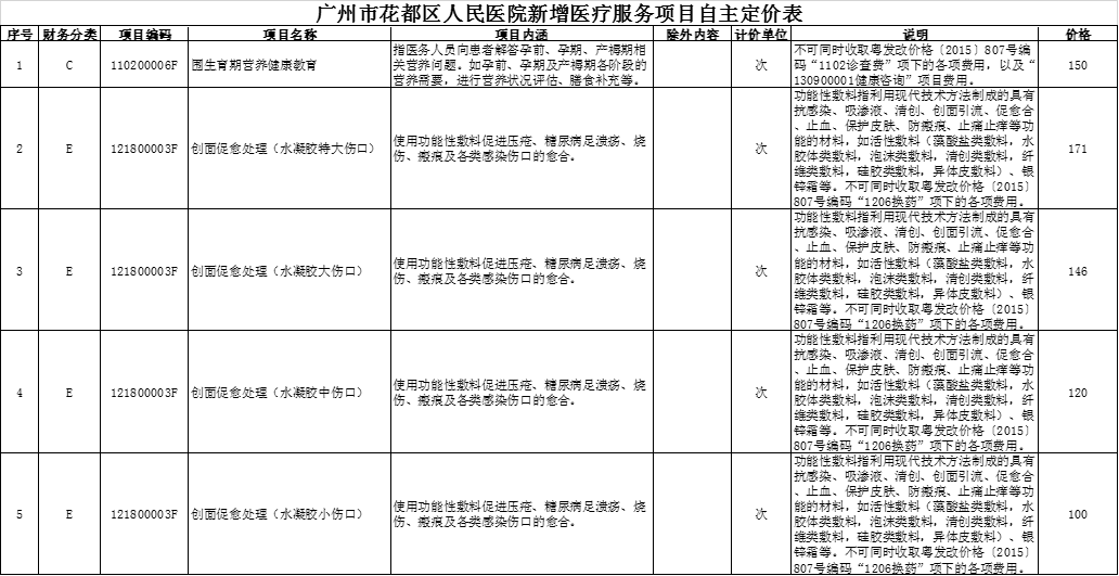 根据穗发改规字〔2018〕11号文件规定“新增医疗服务价格项目审核立项后,由医疗机构自主制定试行价格”以及粤医保规〔2020〕6号文件《广东省医疗保障局关于公布部分医疗服务价格项目的通知》等,我院拟对文件中“围生育期营养健康教育”等项目进行定价(具体见附件1:广州市花都区人民新增医院医疗服务项目一览表)。如有疑问请与财务科联系。联系电话:020-66355123。