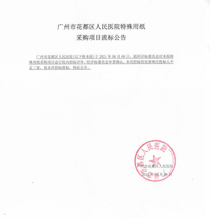 广州市花都区人民医院特殊用纸采购项目流标公告