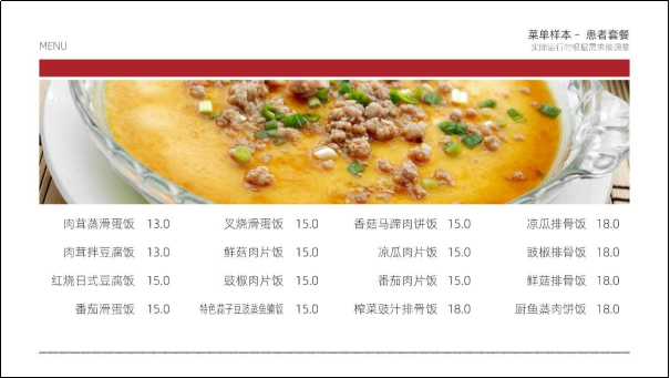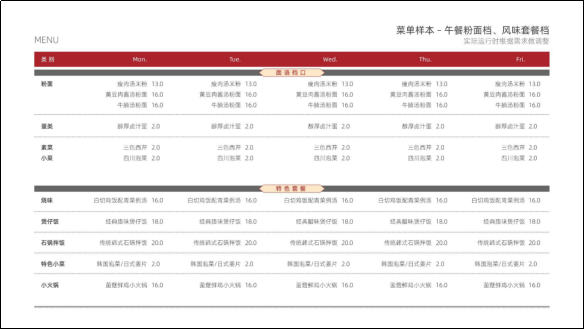 (9)示例菜单及价格