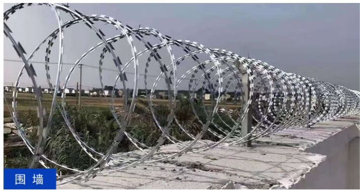 配固定镀锌丝,及不锈钢V型支架,报价长度为围墙垂直投影长度 |