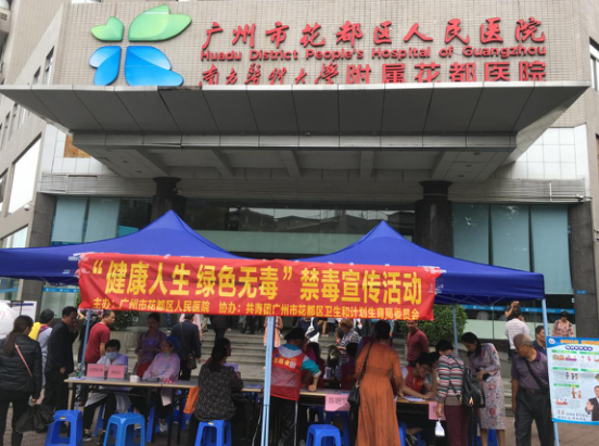 为贯彻落实国家、省、市、区禁毒工作指示,为进一步提高我院医务人员的“识毒、防毒、拒毒”的意识和能力,鼓励他们积极投身全民禁毒战争当中,营造禁毒人民战争的浓厚氛围,10月13日,由广州市花都区人民医院主办,共青团广州市花都区卫生和计划生育局委员会协办的“健康人生 绿色无毒”禁毒宣传活动。结合我院工作实际,采用悬挂宣传标语、到3号楼门诊大楼广场处开展义诊咨询、发放宣传资料等多种形式,大力开展禁毒知识宣传活动。