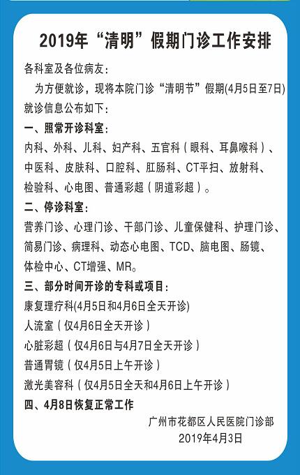 2019年“清明”假期门诊工作安排