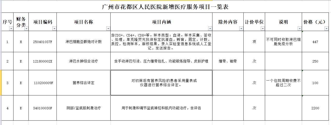 广州市花都区人民医院关于“营养综合评定”等医疗服务项目价格公示